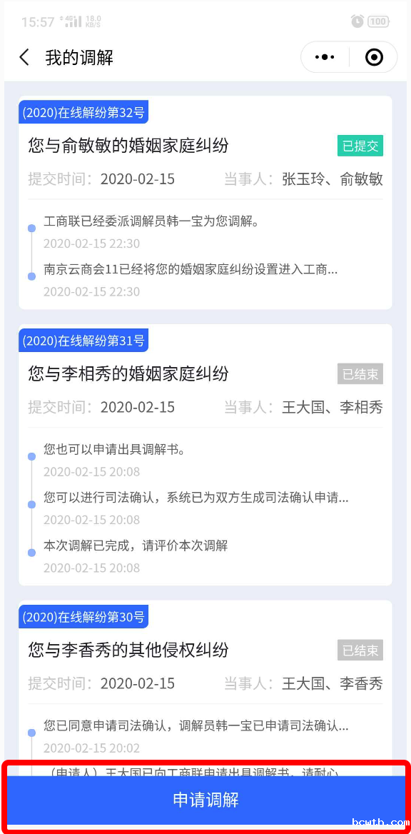 第四步: 提交后选择调解员受理您的申请,提交成功后,可在首页调解模块中跟踪调解进度。